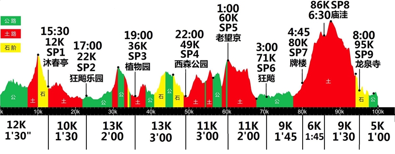 比賽發槍時間是下午14點,百公里和50公里的發槍時間都很特殊,讓不少朋友不適應,極大地考驗大家的夜跑作戰能力。