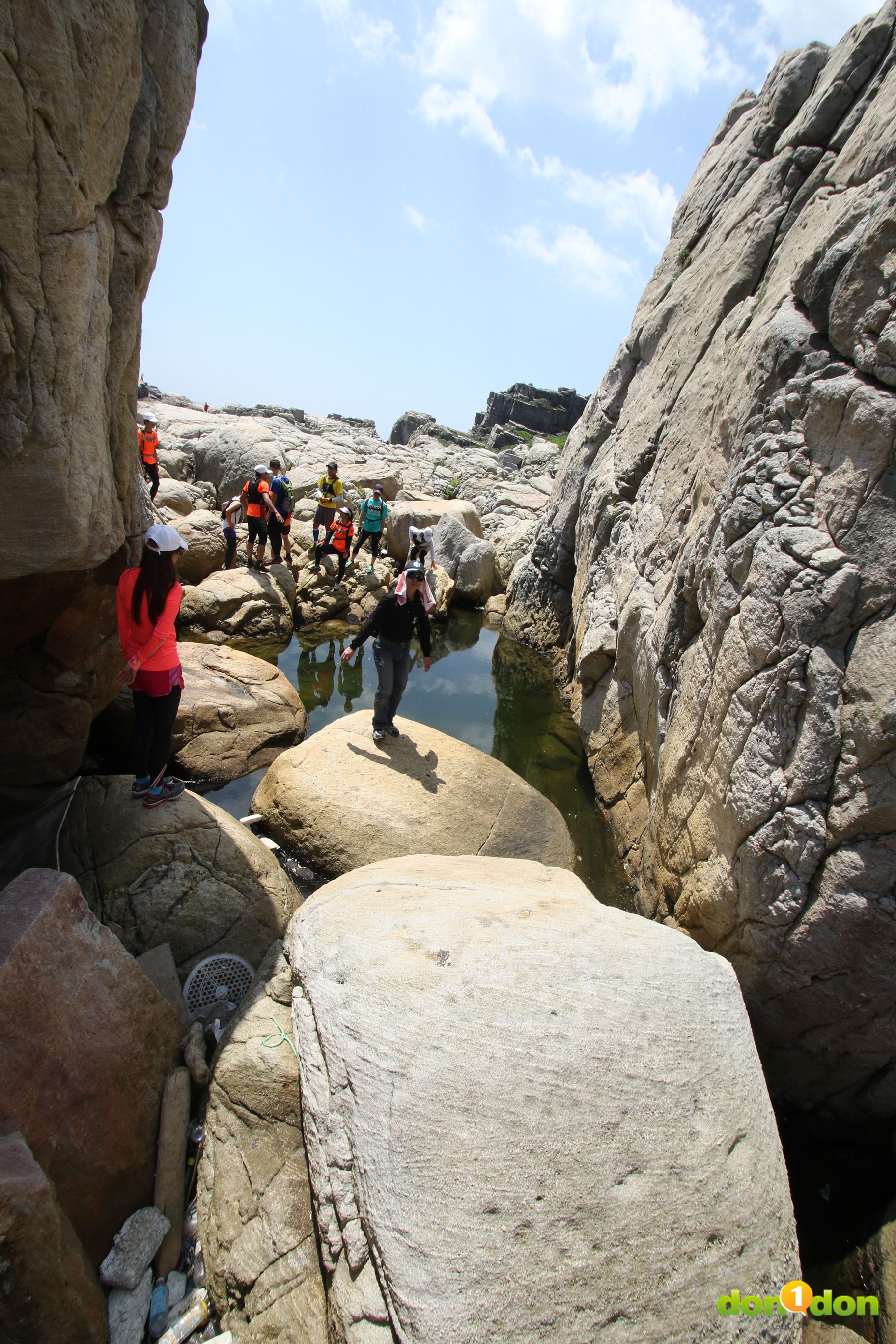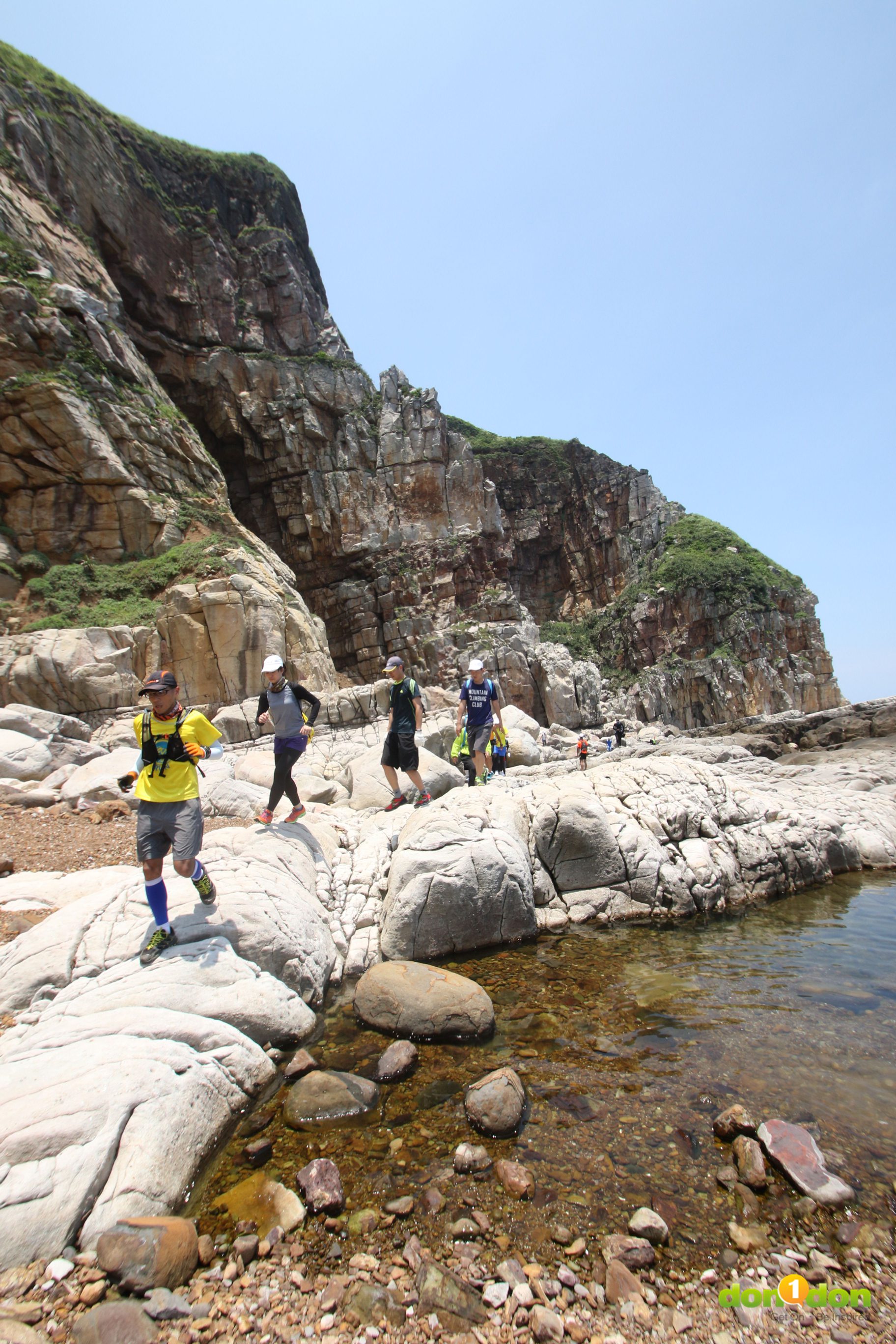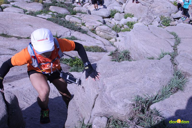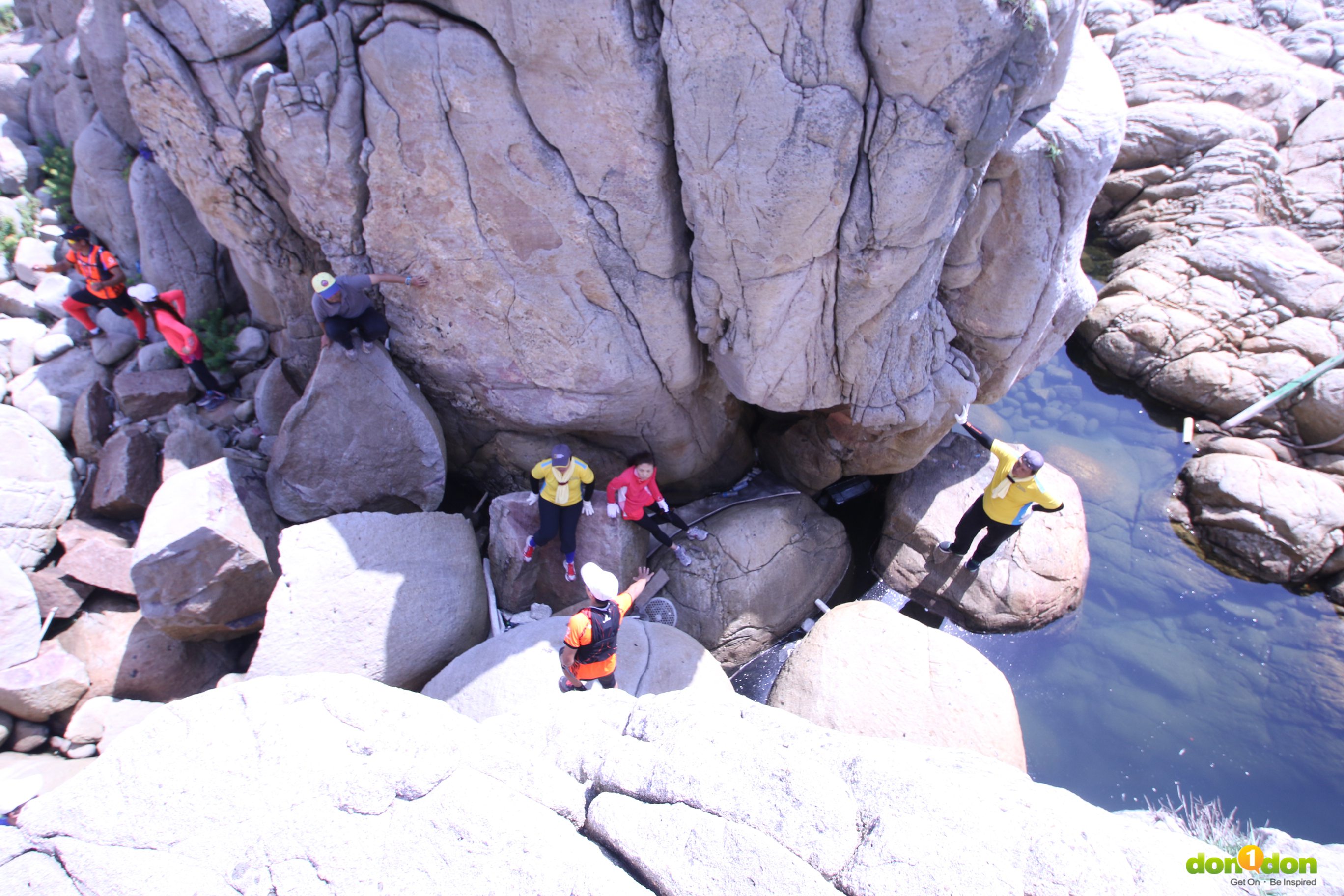 學員們展翅高飛,喔不,是跳向近兩公尺的對側岩石。不同於在平穩的路面上奔跑跳躍,疾速健行必須穿越或是跨過岩石、鴻溝才能達到彼岸。Speed Hiking不只求快,還必須沉穩地完成每一個挑戰。