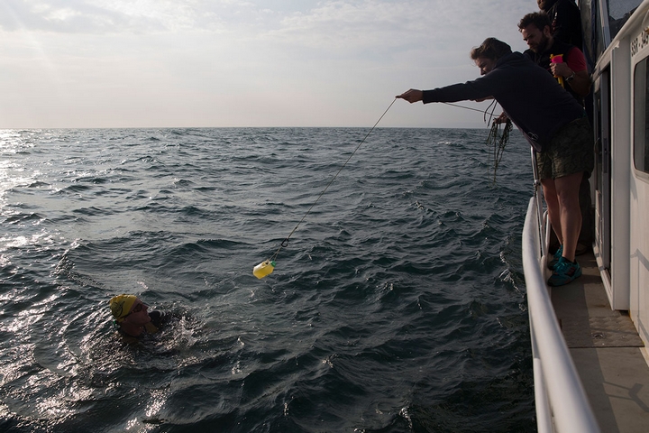 在16度左右的低溫海水中游上17小時