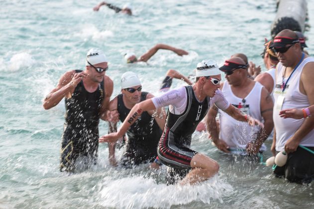 本次開賽後,沒有意外的是由游泳技能全點滿的Andy Potts領軍的一個8-9人集團,集團裡包括Tim Reed、Tim O’Donnell、Brent McMahon、還有….Jan Frodeno,都在48分左右結束游泳上岸。