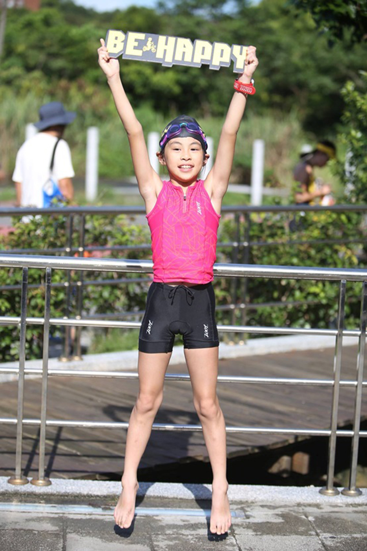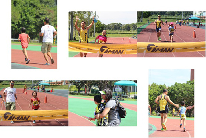路跑是三項中最後一個項目,因此家長們聚在跑道旁幫小朋友加油,有久戰三鐵賽場的家長當起陪跑員陪著小鐵人繞圈,看著大人小孩一起跑在操場的背影,小鐵人衝向終點與爸媽開心擁抱的那一剎那,心裡真有莫名的感動。