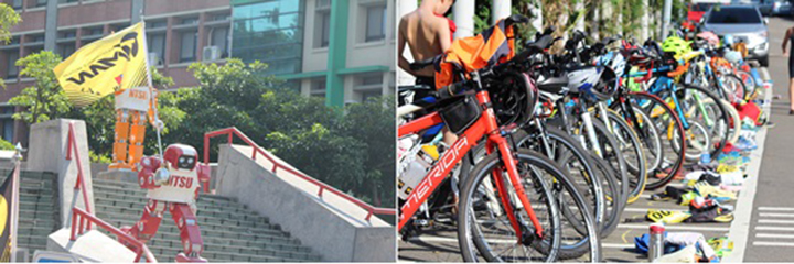 雖然活動已過了一段時間,但小鐵人們的陽光般笑容依然閃耀。當天清晨六點志工按規劃在體大各場地實施場佈,七點家長陸續帶著小鐵人們報到,滿場的嬉鬧聲預告了今天是他們的日子。最特別的是小鐵人進入轉換區前,如同正式鐵人賽的「安全帽」、「號碼布」檢查外,轉換區志工嚴格實施「安全帽鬆緊度檢查」、「煞車檢查」,調校至合格才准進入轉換區置物,可見這場活動對安全規劃的細節重視。