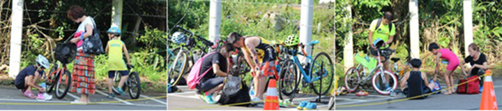 另外在活動開始前,家長們陪同小鐵人完成轉換區擺設,小朋友進入轉換區後,快速的完成裝備穿戴,準備出發騎上3公里的自行車。