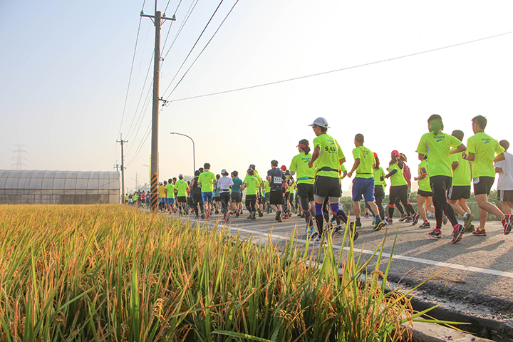 金黃色的秋收時節,三期稻作正準備成熟,田間稻穗初結實,整片田野呈現黃綠色,跑在其中能感受稻香隨風飄逸,以及那迷人的田園景色。尤其在清晨跑步時,霧氣初散,煦煦透亮的陽光更會輕輕灑落跑者身上。