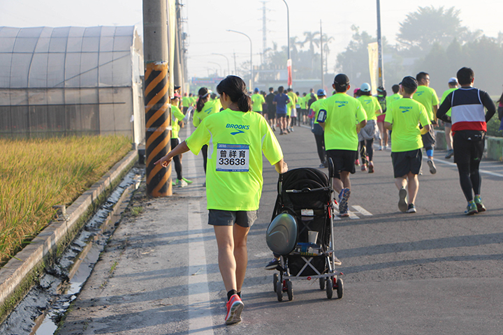 跑者行經賽道路線,不只能欣賞稻田、水圳、高鐵站等自然與人文風情,也可以感受當地的人情味,甚至還能來一場奇裝異服秀。今年有情侶一起參加比賽,在經過攝影師前會牽手親吻,彷彿希望兩人愛情能跑得長長久久,還有幾位民眾推著嬰兒車跑了10公里,令人感受到他們的親子情深。