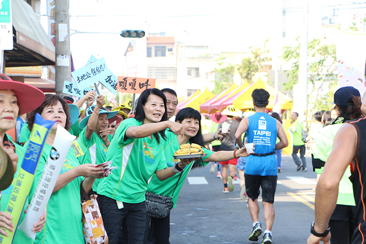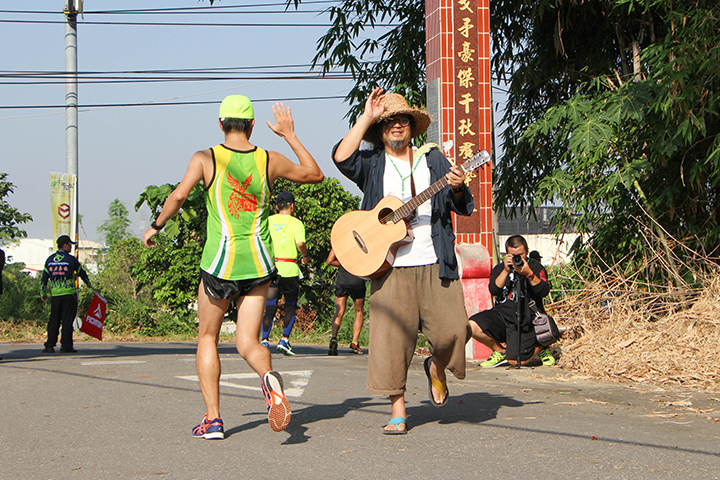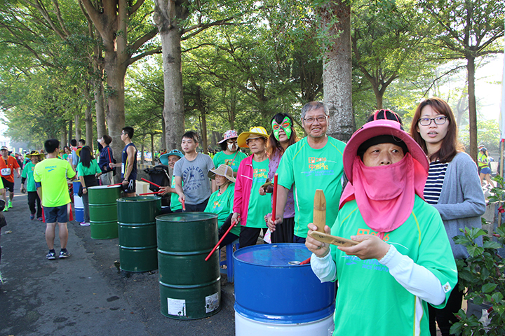 數千名熱情的當地人自組啦啦隊,以拉琴、敲鑼打鼓、表演等形式為選手加油。青春洋溢的高中生不斷伸手與跑者擊掌外,拉著小提琴的小學生也演奏出動人音樂鼓舞選手,現場還有許多cosplay加油團,有居民穿戴三太子神將厚重裝扮,吸引選手停下腳步跟他們一起拍照。