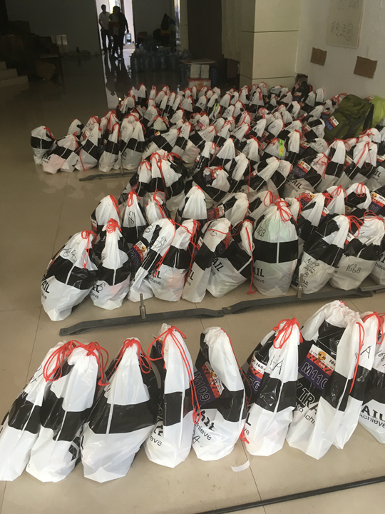 前一天說明會上,重新更新補給站補給內容,CP1及CP2,只有水和饢,我們會後馬上再去材買,我還買了大陸跑友喜歡的榨菜兩包(陳偉推薦口味,果然好吃,好吃到都想買回到台灣當補給)、紅牛三罐、小麵包(類似台灣蘋果麵包,6小包)、大盒水果果凍兩盒、一塊饢(5元,超大一塊,折1/4+1/4帶著),一整個怕餓到的概念,反正有三個轉換袋(笑,這也是魔鬼細節)。